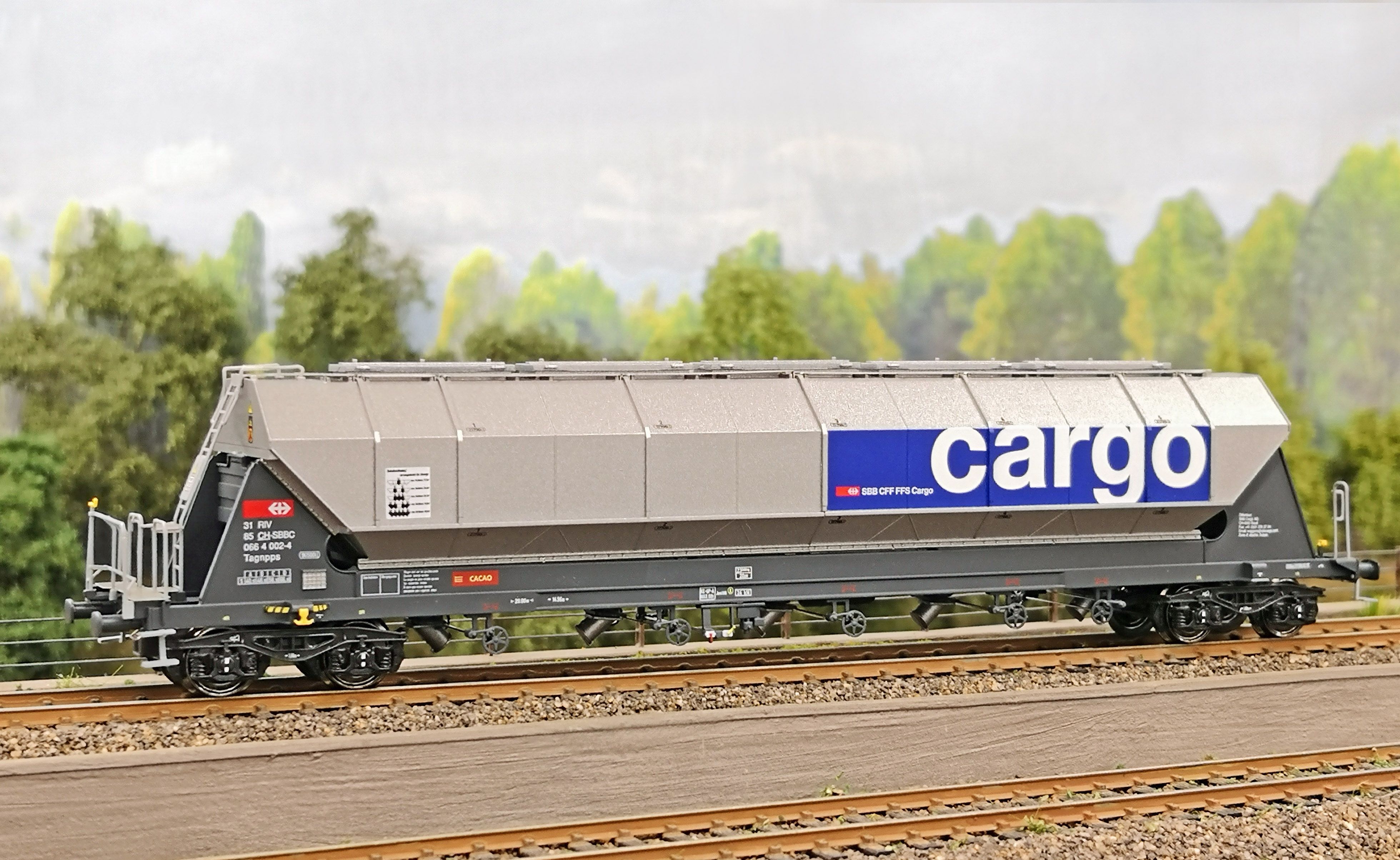 Silowagen für Getreidetransport Tagnpps 96,5m³ SBB Cargo, silber, für die Epoche 6.