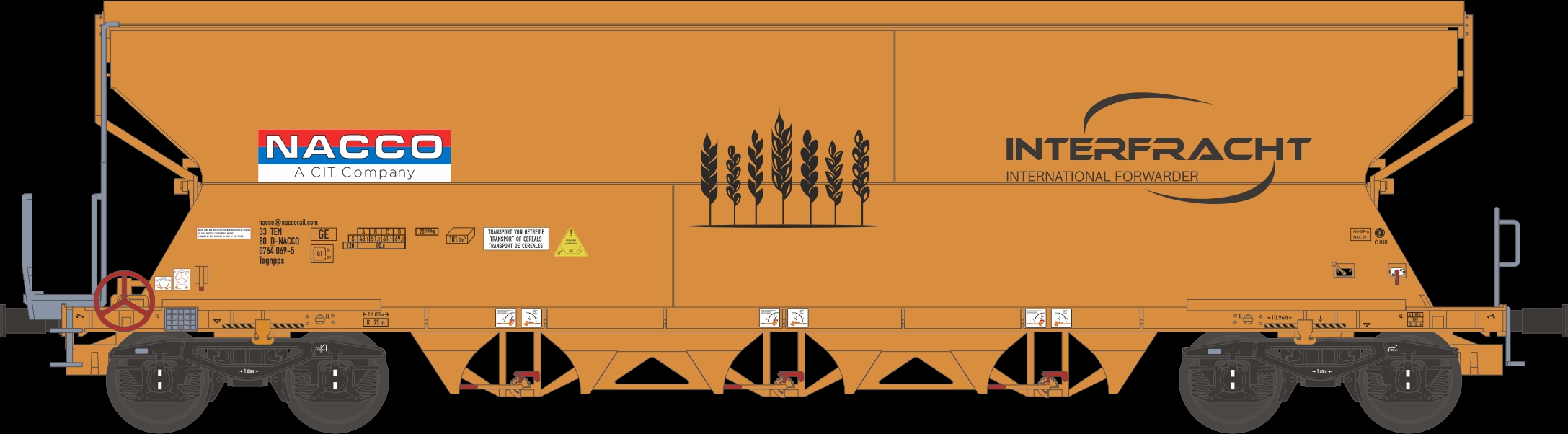 Getreidewagen Tagnpps 101m³ INTERFRACHT, orange, NACCO, 3. , AC - Betriebsnummer: 3380 0764 073-7