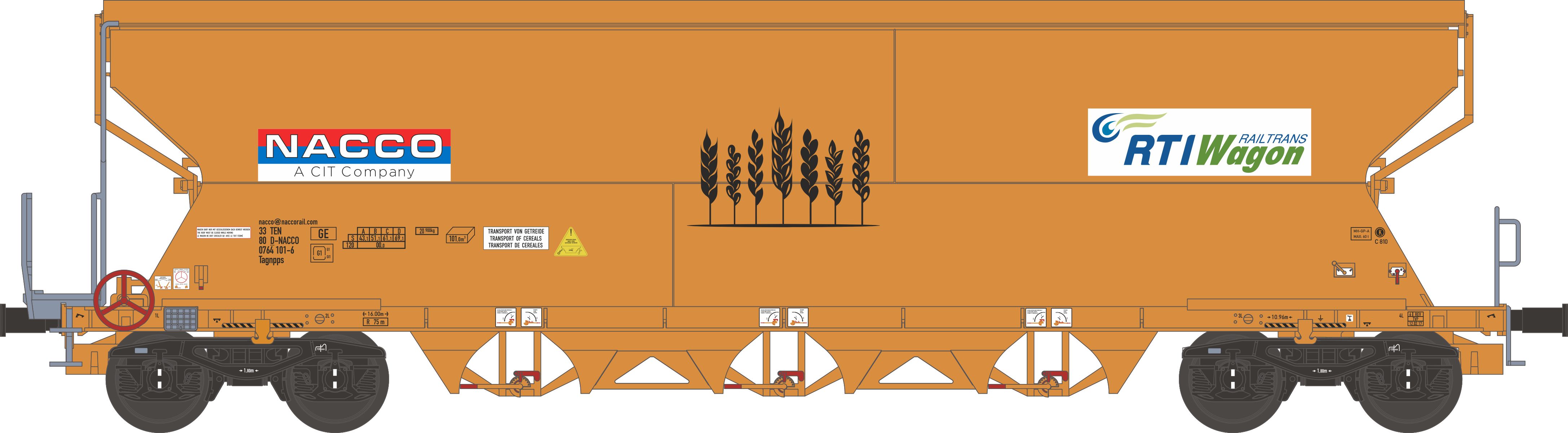 Silowagen für Getreidetransport Tagnpps 101m³ NACCO-RTI, gelb, für die Epoche 6. AC Version.