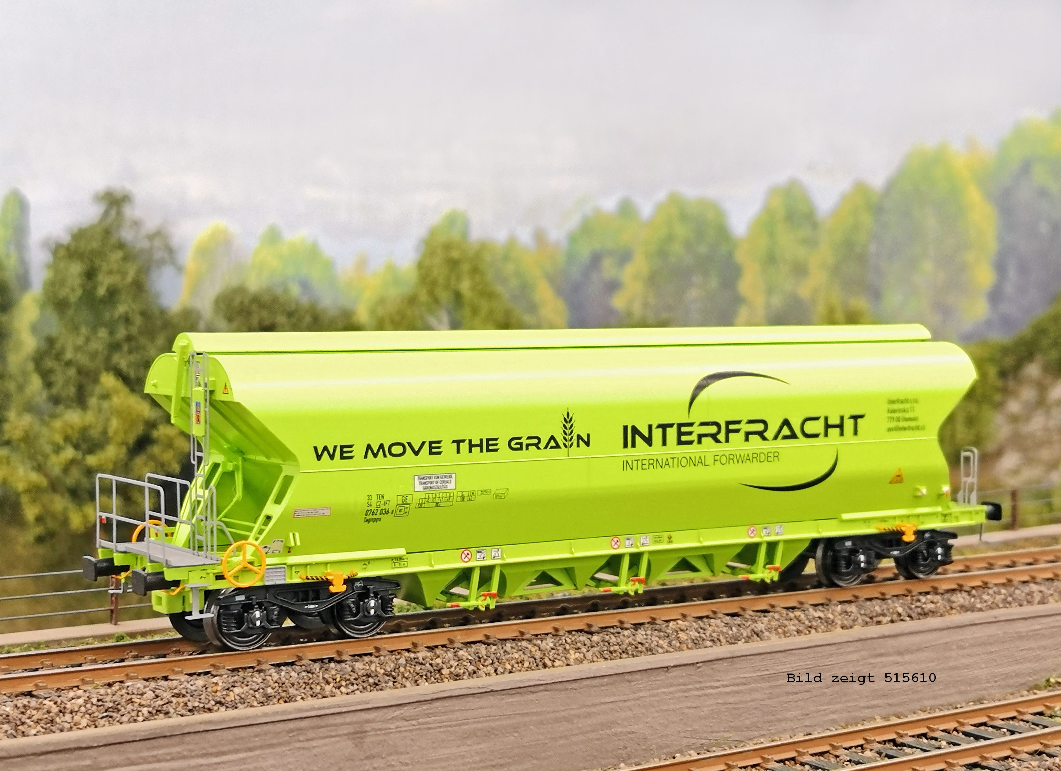 Getreidewagen Tagnpps 101m³ INTERFRACHT, neongrün, für die Epoche 6. Neue Betriebsnummer: 3354 0762 042-6