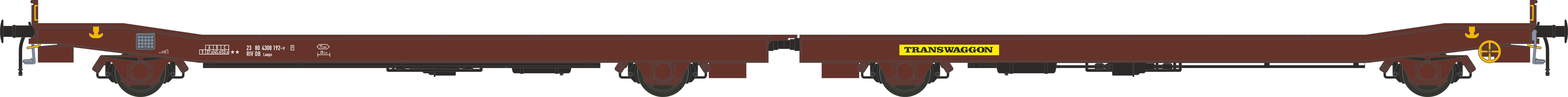 Flachwageneinheit Laaps, TWA, braun, der Transwaggon, für die Epoche 4. Mit Zugschlussbeleuchtung IT, AC Version.