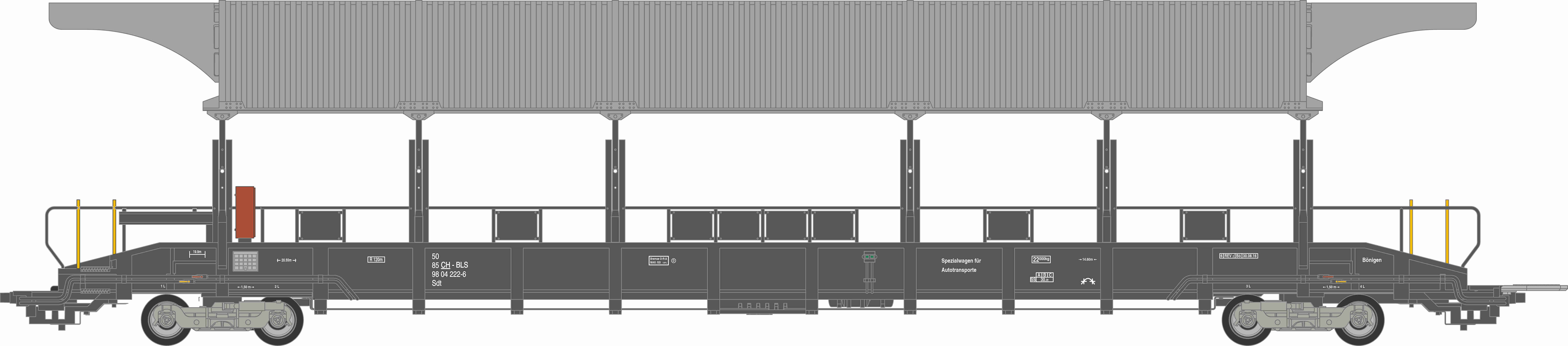 BLS Autotransport-Mittelwagen, überdacht, mit Überfahrblech mit Ladeflächenbeleuchtung, Zug 43 Betriebsnummer: 5085 9804 231-7 mit Druckgußchassis und Beleuchtung