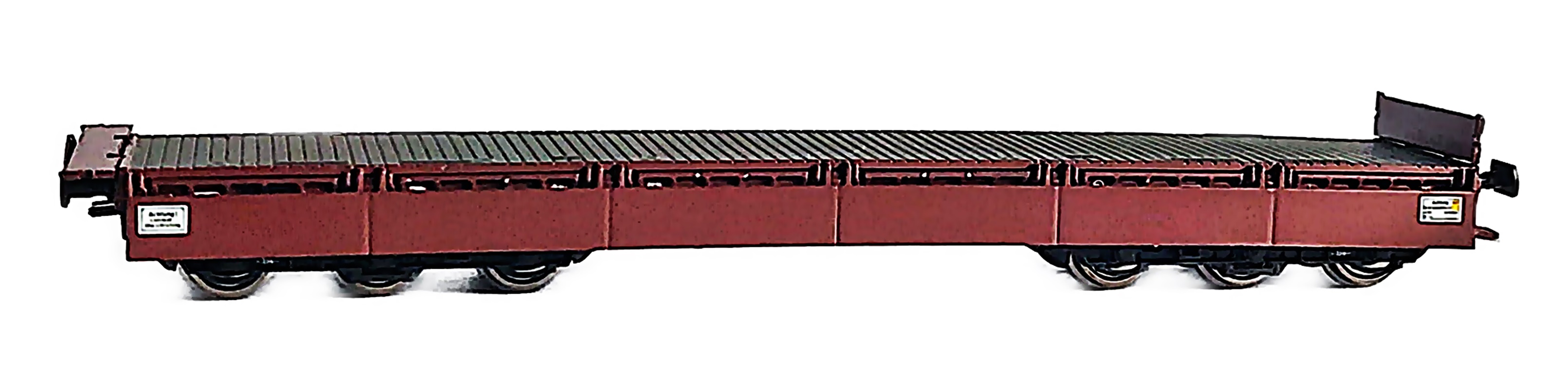 Schwerlastwagen der Bauart Samms 4860 unbeladen abgeklappt 1. Betriebsnummer braun-braun-braun. der DR, für die Epoche 4.