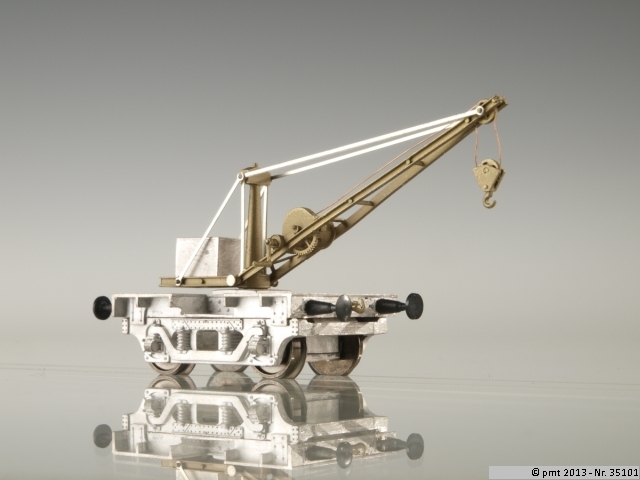 Bausatz. Bw Kran Typ Chemnitz. Modelldetails: Weißmetall- und Messingfeinguss-Teile. Vorbild: Für Hebearbeiten in Betriebsbahnwerken dienen kleine schienengebundene Kräne. Das Vorbild ist ein Unikat. Es ist während der Epoche II im Bw Chemnitz gebaut worden und bis heute im Einsatz.