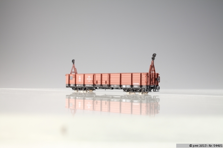 Offener Güterwagen in braun der DR für die Epoche 3. Modelldetails: Länge über Puffer: 123,5 mm und mit Trichterkupplung.