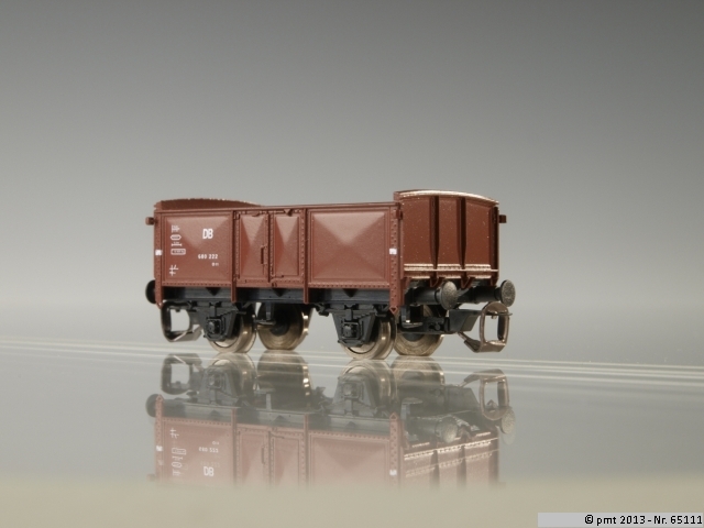 Offener Güterwagen Schwerin der DB für die Epoche 3. Modelldetails: Länge über Puffer: 55,0 mm. Mit Kurzkupplung. Verbandsbauart nach Musterzeichnung. Kunststoff-Fertigmodelle aus Großserien-Spritzgussform. Bei jeder neuen Fertigungsserie erhalten die Waggonmodelle andere Wagennummern.