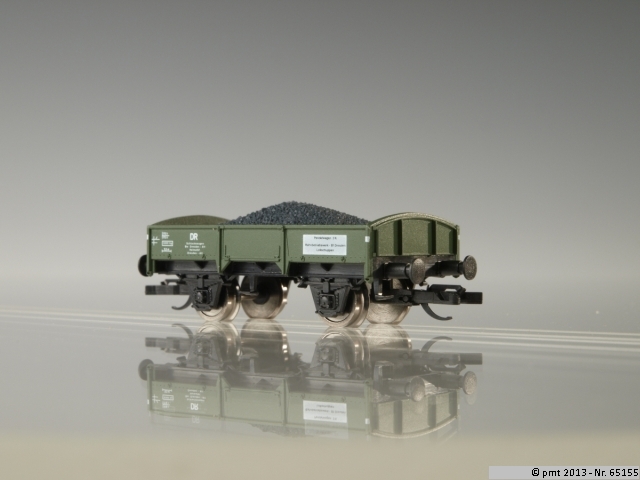 Niederbordwagen Bw Schlackewagen der DR für die Epochen 3/4. Modelldetails: Länge über Puffer: 55,0 mm. Mit Kurzkupplung. Verbandsbauart nach Musterzeichnung. Kunststoff-Fertigmodelle aus Großserien-Spritzgussform. Bei jeder neuen Fertigungsserie erhalten die Waggonmodelle andere Wagennummern.