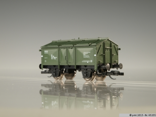 Kohlevorratswagen 2-achs für einen Bauzug für die Epoche 4. Modelldetails: Länge über Puffer: 55,0 mm. Mit Kurzkupplung. Verbandsbauart nach Musterzeichnung. Kunststoff-Fertigmodelle aus Großserien-Spritzgussform. Bei jeder neuen Fertigungsserie erhalten die Waggonmodelle andere Wagennummern.