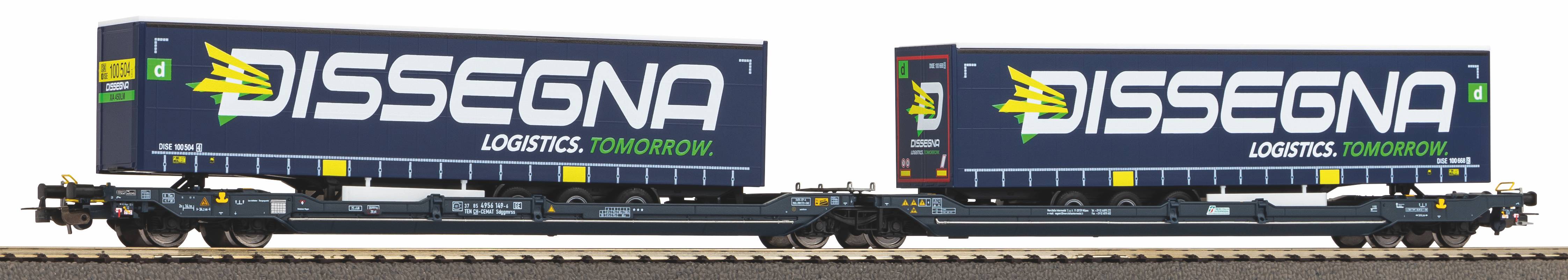 Doppel-Taschenwagen T3000e der SBB/Wascosa mit 2 "Dissegna" Trailern, für die Epoche 6