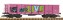 Neuheit 2023: Offener Güterwagen vom Typ Eaos der SBB in Epoche VI. Die Seiten des pinkfarbenen Wagens sind mit unterschiedlichen Graffiti-Dekors bedruckt.