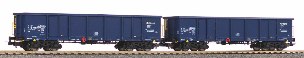 Zweierset bestehend aus zwei offenen Güterwagen vom Typ Eaos von Axbenet aus Epoche VI mit Sandbeladung. Wie das Vorbild ist der Eaos auch im Modell ein Fahrzeug mit hoher Verbreitung und sollte auf jeder Modellbahnanlage mehrmals vorhanden sein. Da lag es nahe, diesen wichtigen Wagentyp mit einer zeitgemäßen Neukonstruktion zu bedenken. Entstanden ist eine Miniatur, die dank äußerst plastischer Gravuren und einer vollendeten Lackierung samt stimmiger Bedruckung absolut authentisch wirkt. Besonders ins Auge fallen die äußerst fein gearbeiteten Drehgestelle, deren Konstruktion gleichzeitig eine perfekte Gleislage gewährleistet. Für ein vorbildorientiertes Bild im Zugverband sorgt die Kulissenführung. Radsätze für das Mittelleiter-System stehen zur Verfügung.