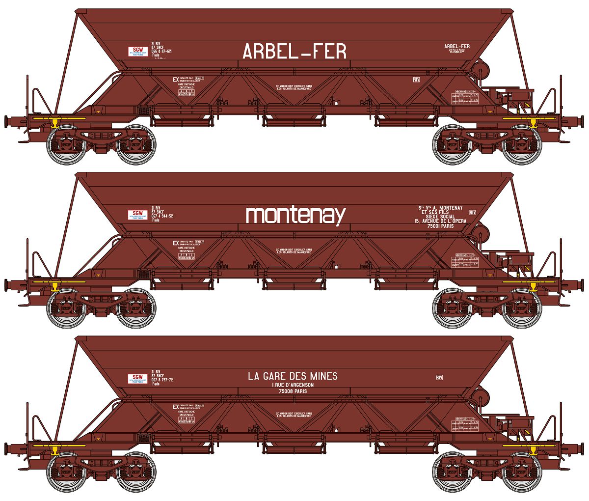 3-teiliges Selbstentladewagen-Set "ARBEL-FER, MONTENAY and LA GARE DES MINES" der SNCF für die Epoche 4