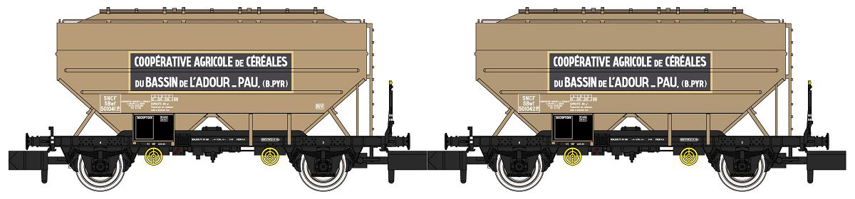 Set mit 2 Getreidewagen Typ Richard "Cooperative Agricole de l'Adour" der SNCF für die Epoche 3