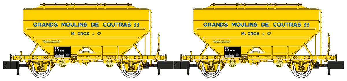 2-teilieges Silowagen Set der Bauart RICHARD "Grands Moulins de Coutras" der SNCF für die Epoche 4