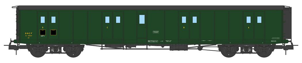Ex-PLM Gepäckwagen, grün 306 mit schwarzem Dach, SNCF Nr. 58803, für die Epoche 3.