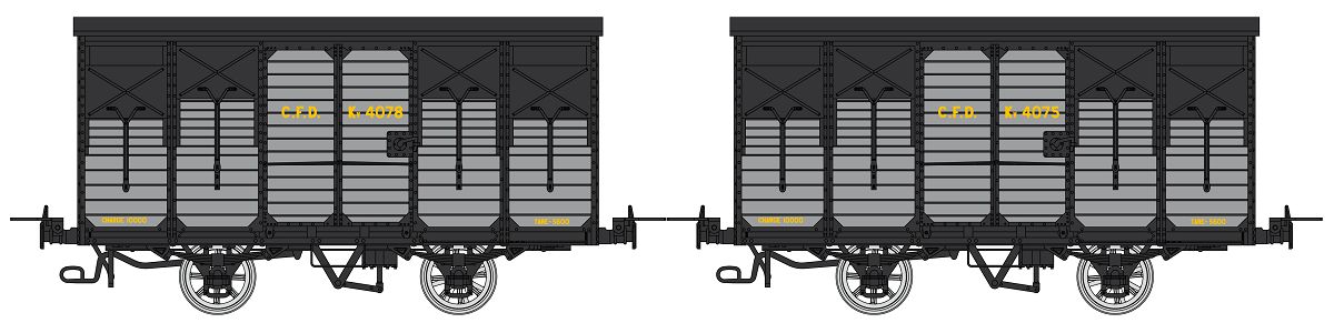 Set of 2 Covered Wagon, Roof 2 slopes, Grey / Black steel Kv 4078 & Kv 4075