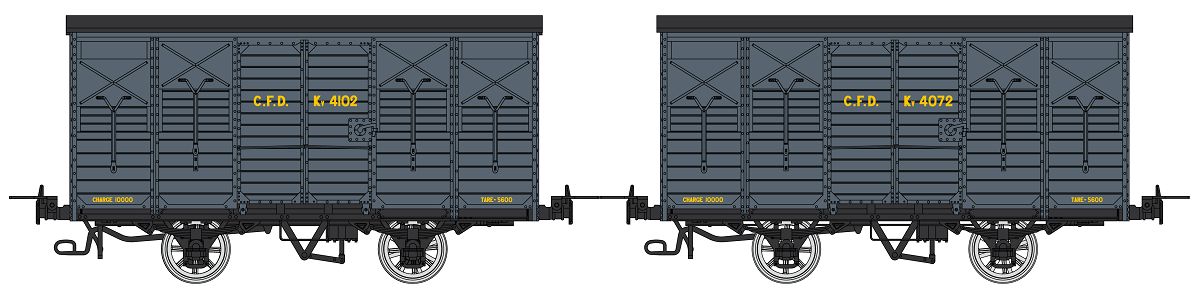 Set of 2 Covered Wagon, Round roof & roof 2 slopes, dark grey Kv 4102 et Kv 4072
