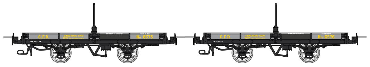 Set de 2 Flat Wagon (Tree trunk transport), Grey / Black steel, CFD Htv 6575 & Htv 6576