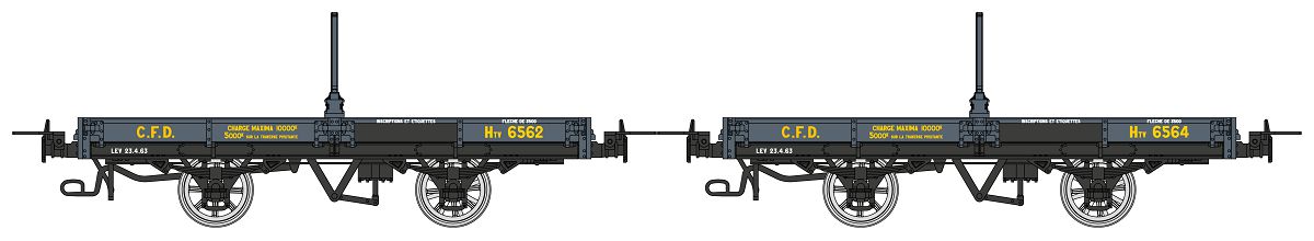 Set de 2 Flat Wagon (Tree trunk transport), Dark grey, CFD Htv 6562 & Htv 6564