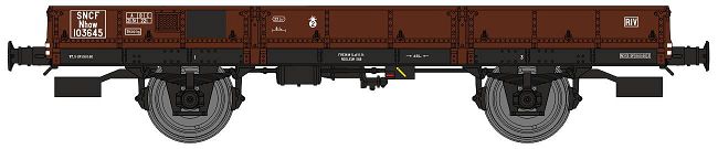 OCEM 29 Niederbordwagen SNCF braun Nhow 103645 Gebremst, Rollenlager, Scheibenräder, Epoche IIIb