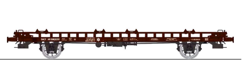 UFR Doppeltragwagen der SNCF, Betriebsnummer HR 598203, braun - schwarzer Rahmen, unbeladen, für die Epoche 3.