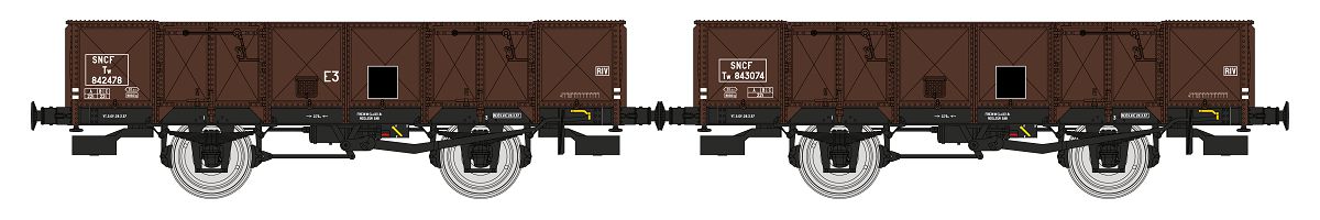 Set of 2 PLM Gondola 4 doors, brown 540, Tw 842478 Tw 843074 SNCF Era III B