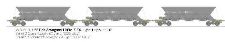 Set of 3 Open hoppers EX Typ 1ECR Era. VI