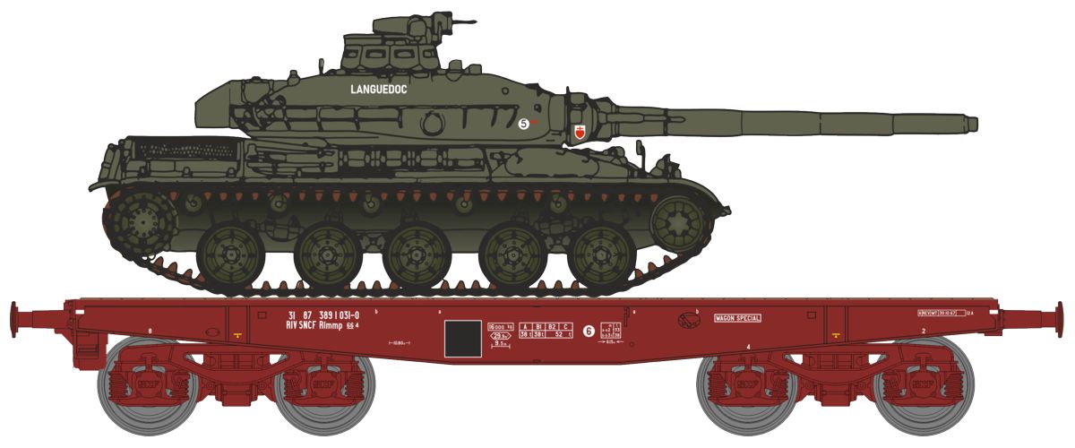 Wagon Porte-Char SSym46 SNCF Ep.IV + CHAR AMX-30 "LANGUEDOC" 1DB 6RD Vert
