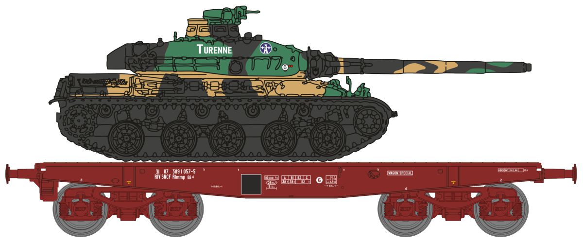 Wagon Porte-Char SSym46 SNCF Ep.IV + CHAR AMX-30 "TURENNE" 1DB 1RC 3 Tons