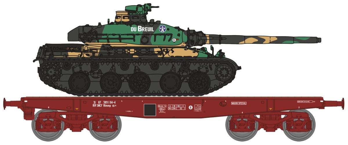 Wagon Porte-Char SSym46 SNCF Ep.IV + CHAR AMX-30 "DU BREUIL" 1DB 1RC 3 Tons