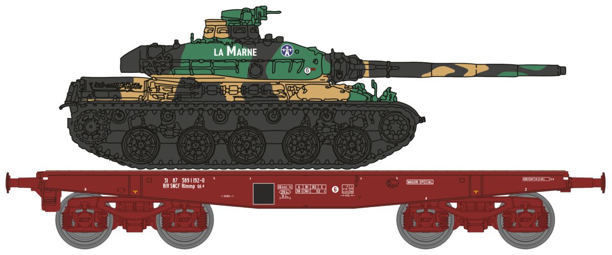 Wagon Porte-Char SSym46 SNCF Ep.IV + CHAR AMX-30 "LA MARNE" 1DB 1RC 3 Tons