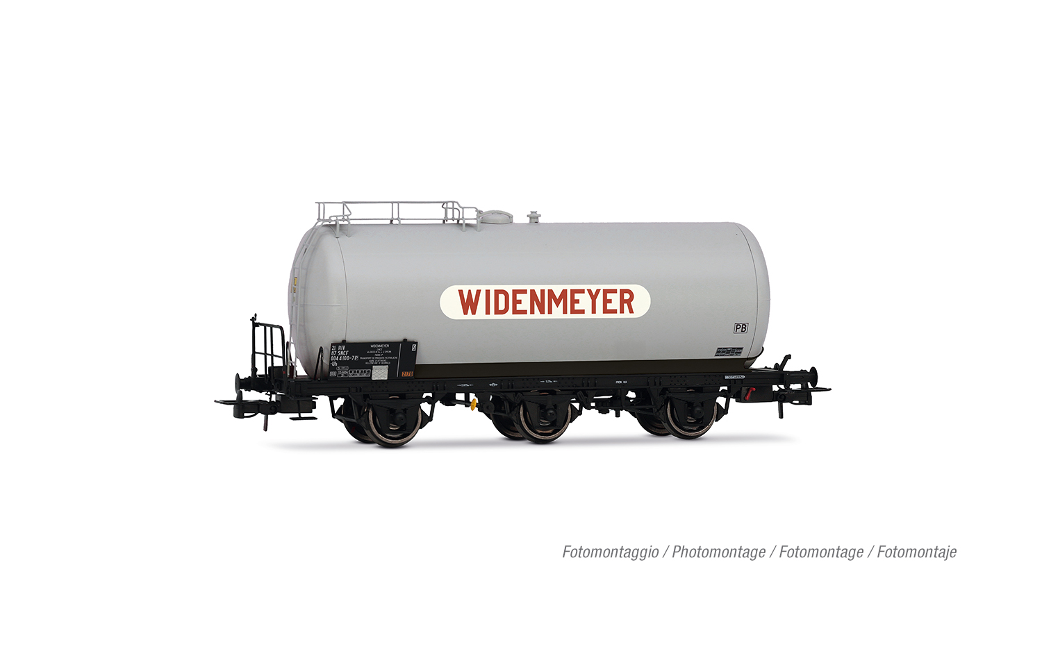 SNCF, 3-achs. Kesselwagen der saarländ. Heizölgesellschaft äWIDENMEYER“, grau, Ep. IV