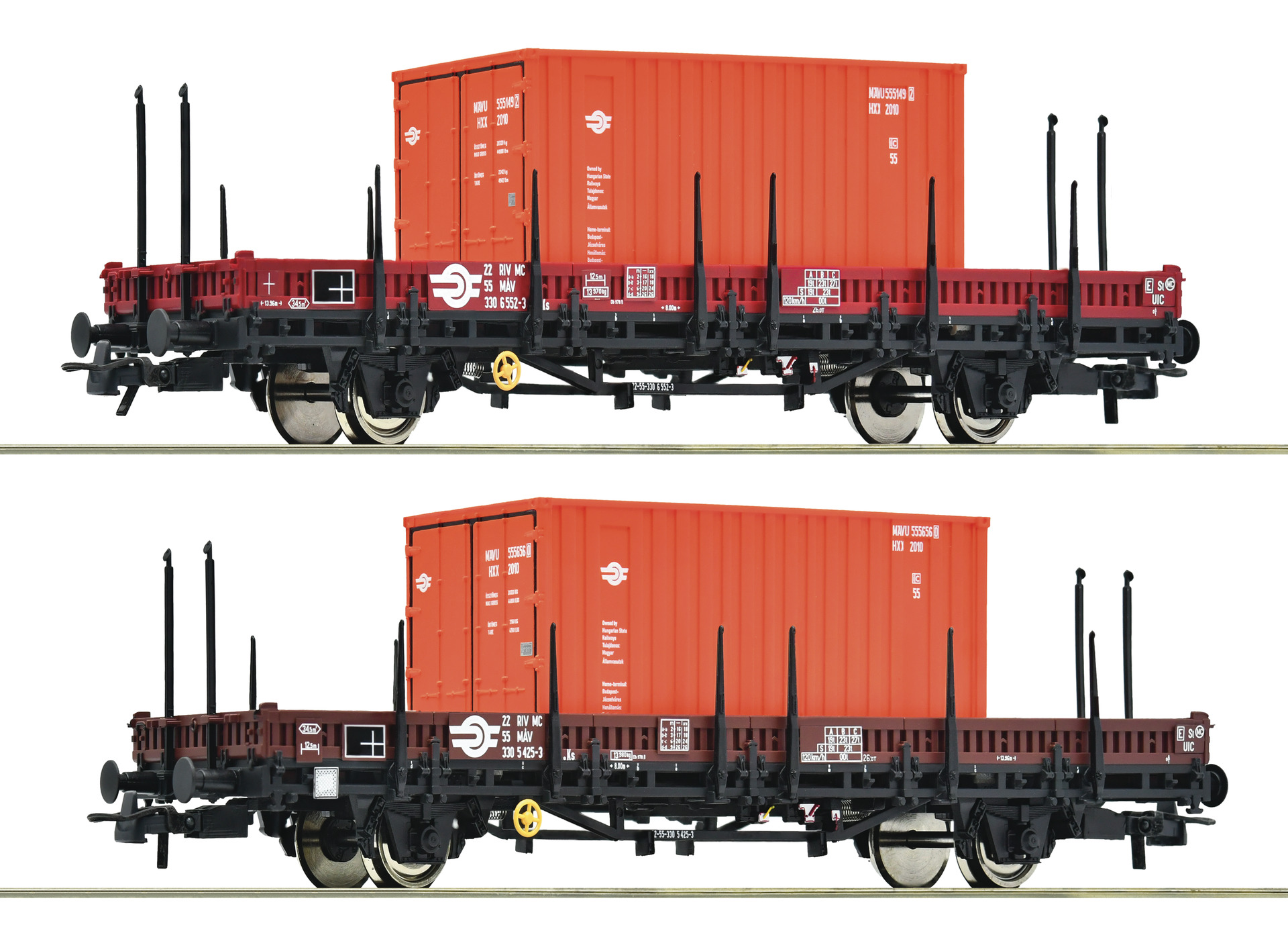 Wagenset mit zwei 2-achsigen Schwenkrungenwagen, Gattung Ks, der Ungarischen Staatsbahn MAV