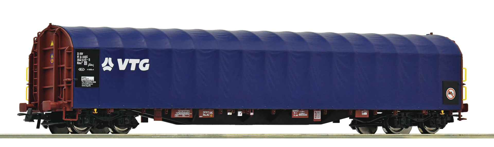 Schiebeplanenwagen, Gattung Rilns, der VTG. - Mietwagen der VTG, eingestellt bei SBB Cargo - Fein detaillierte Ausführung - Mit separat angesetzten Grifftstangen - Realistische Struktur der Plane - Einsatz: Transport von witterungsempfindlichen Gütern