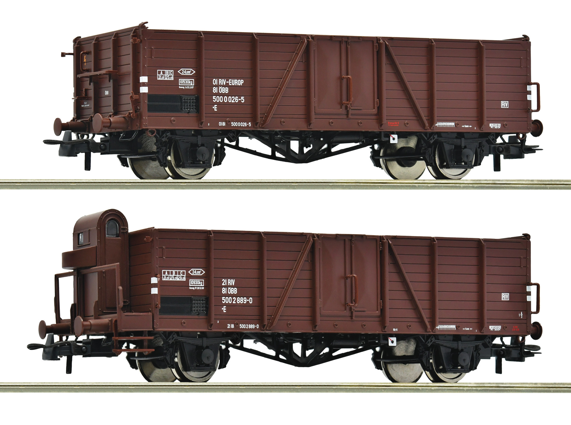 Wagenset mit zwei offenen Güterwagen, Gattung E "Villach", der Österreichischen Bundesbahnen ÖBB