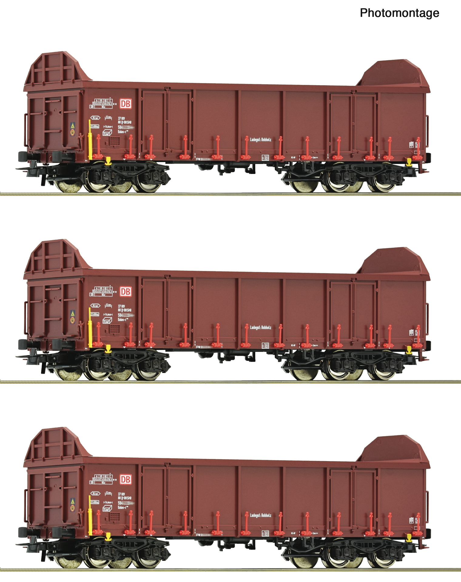 Wagenset mit drei 4-achsigen offenen Güterwagen, Gattung Ealos-t, der Deutschen Bahn DB AG