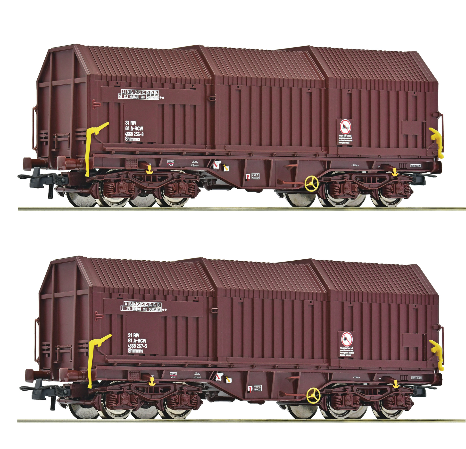 Wagenset mit zwei Teleskophaubenwagen, Gattung Shimmns, der Österreichischen Bundesbahnen ÖBB