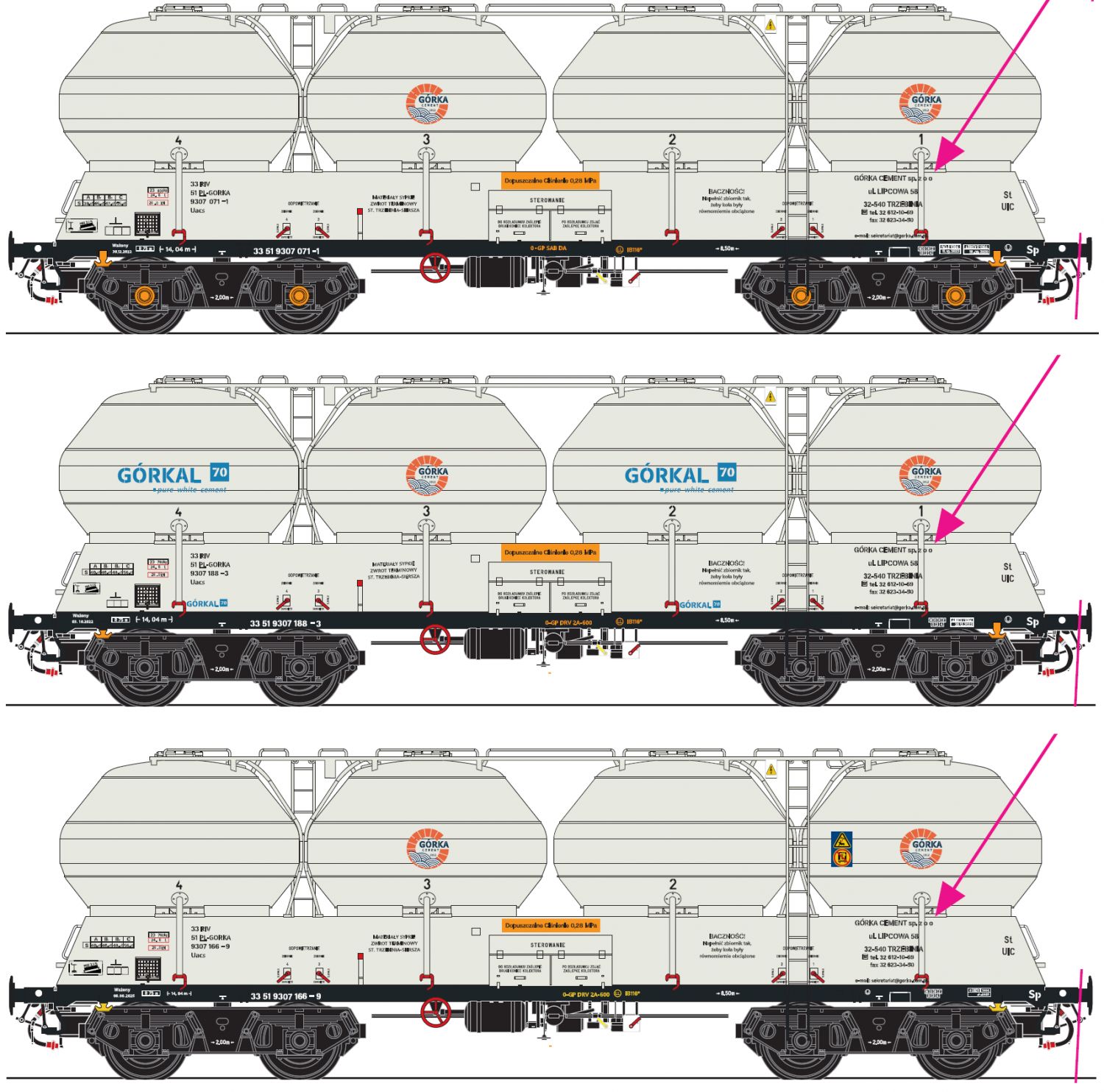 Silowagen-Set 1 3-teilig Bauart 408S der Firma Górkal, für die Epoche 6a.