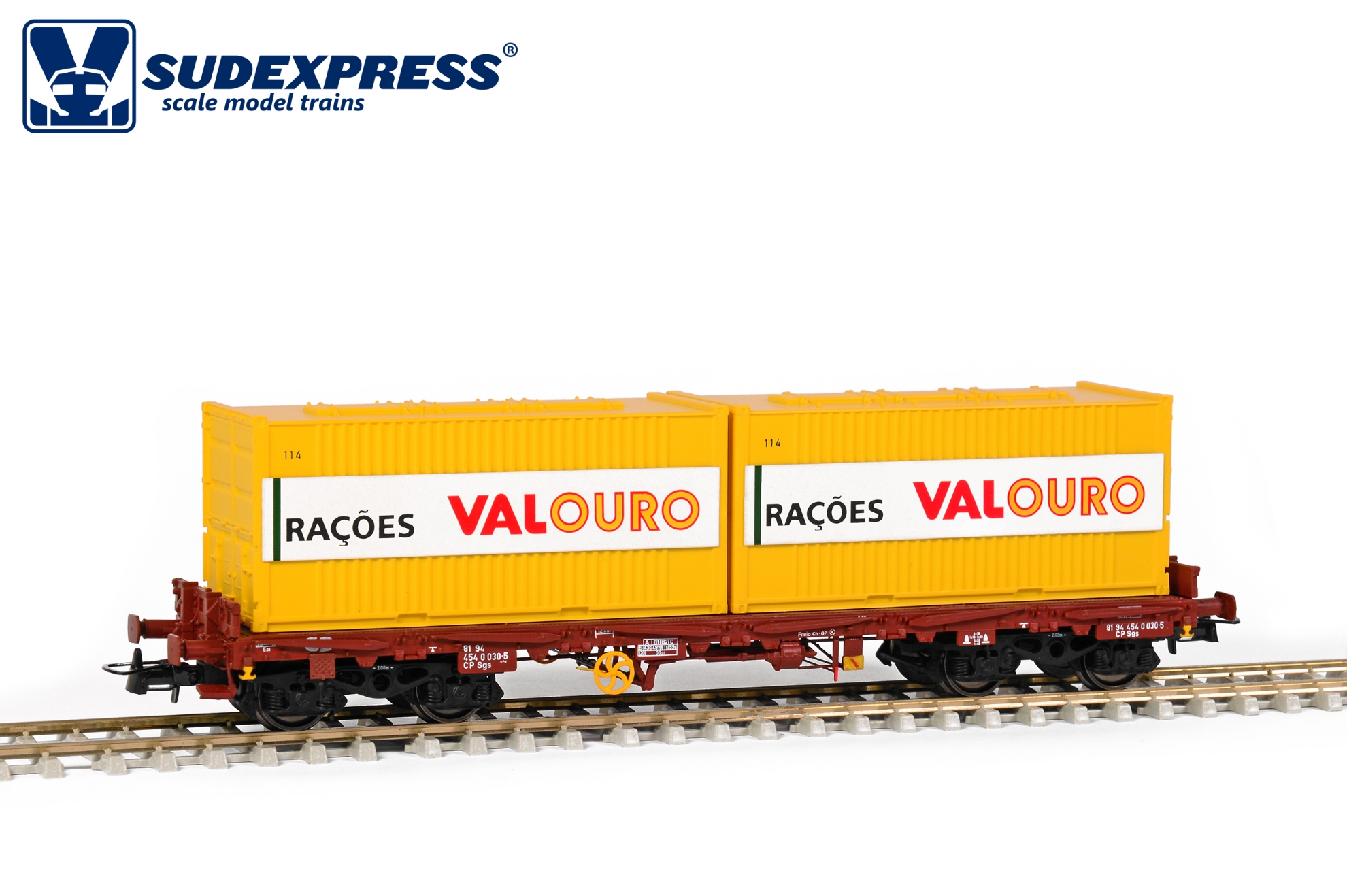 Vagão CP SGS versão freio a ar comprimido x 2 contentores Raçoes Valouro