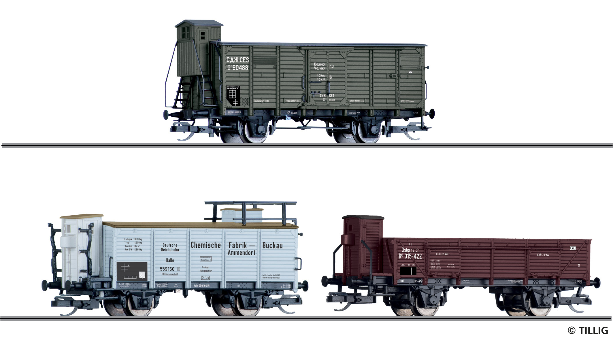 Güterwagenset der CES, DRG und BBÖ, bestehend aus einem ...