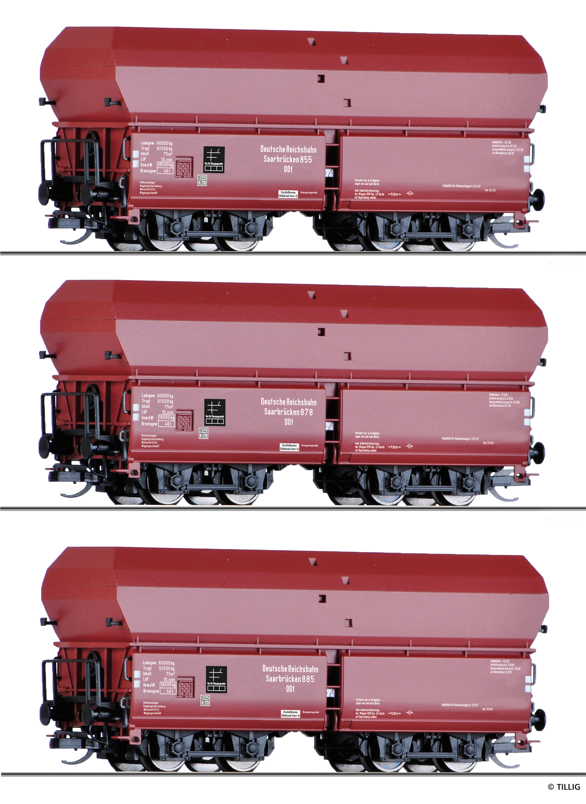 Güterwagenset der DRG, bestehend aus drei Selbstentladewagen OOt Saarbrücken, Ep. II