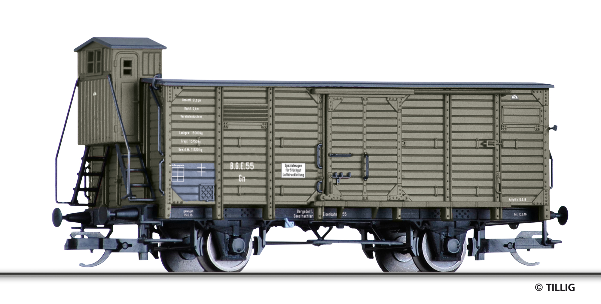 Gedeckter Güterwagen Gn der Bergedorf-Geesthachter Eisenbahn, mit hochstehendem Bremserhaus