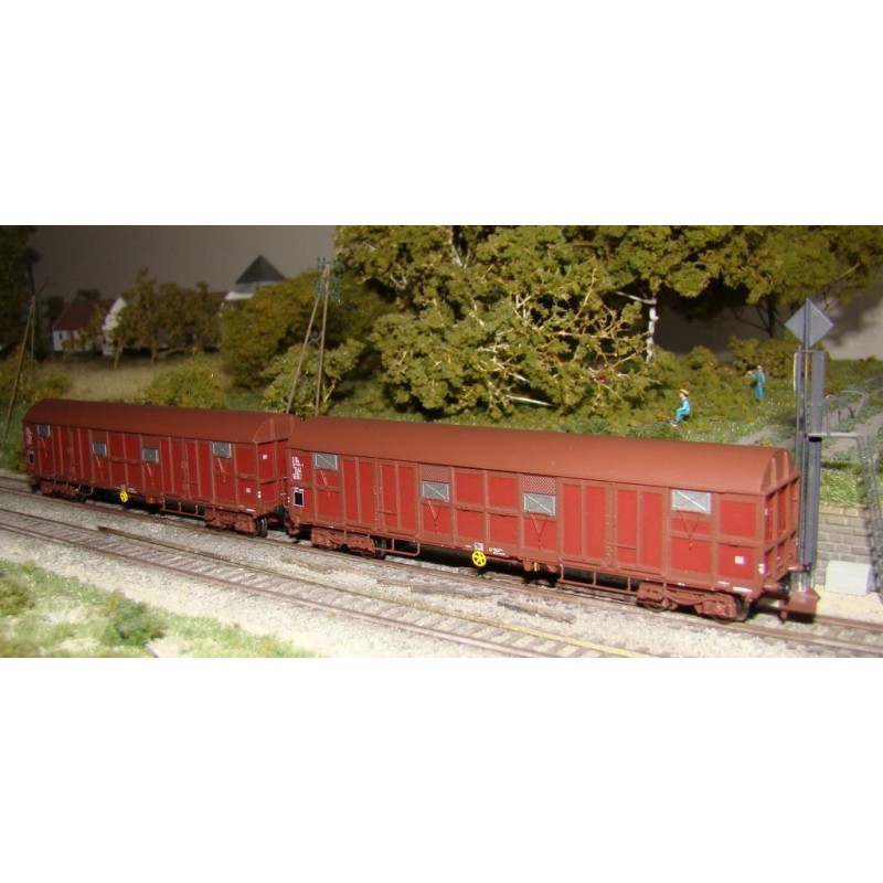 2er Set gedeckte Güterwagen der Bauart Gahkkss 9-16 der SNCF für die Epoche 4.