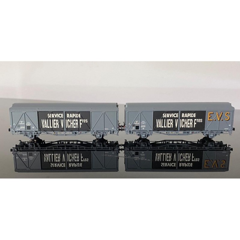 Zweiteiliges Güterwagen Set der Bauart Hbis der SNCF EVS/Simca für die Epoche 4.