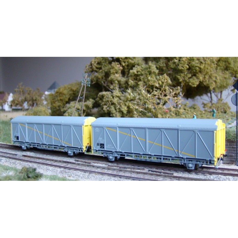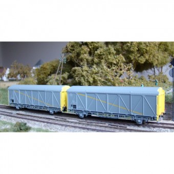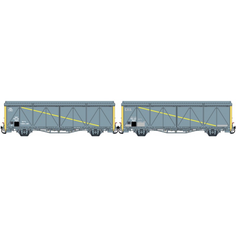 Zweiteiliges Güterwagen Set der Bauart Hi der SNCF EVS für die Epoche 5.
