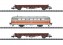 Niederbordwagen mit unterschiedlichen Betriebsnummern und mit Kinematik für Kurzkupplung.