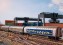 Authentisch gealtert Vorbild: Set mit drei 4-achsigen Schiebewandwagen Habins 12. Privatwagen der Firma Transwaggon GmbH, Hamburg, eingestellt bei der Deutschen Bahn AG (DB AG). Mit starken Alterungsspuren. Betriebszustand um 2004. Modell: Mit Kinematik für Kurzkupplung. Großflächig gealtert. Ein Wagen mit bedruckten Zugschlussscheiben an einem Wagenende.Gesamtlänge über Puffer 435 mm. Die dazu passende, stark ausgebleichte Lok finden Sie unter der Artikelnummer 16407.