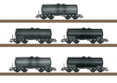 Modell: Laufruhige Spezialdrehgestelle. Angesetzte Aufstiegsleitern und Laufstege. Alle Wagen mit verschiedenen Betriebsnummern, einzeln verpackt und gekennzeichnet. Alle Wagen mit unterschiedlichen Alterungsflächen. Länge über Puffer je Wagen ca. 14,2 cm. Gesamtlänge über Puffer ca. 71 cm.Wechselstromradsatz je Wagen E36667900.Trix-Express-Radsatz je Wagen E33339010. Vorbild: Fünf vierachsige Einheitsleichtkesselwagen für Mineralöle Bauart Uerdingen der Deutschen Reichsbahn (DR). Ältere Bauart mit Pressblech-Drehgestellen und Bremserbühne. Betriebszustand ab 1972. Eine passende Diesellokomotive finden Sie im Trix H0-Sortiment unter der Artikelnummer 25200.Ein passendes Wagenset finden Sie im Märklin H0-Sortiment unter der Artikelnummer 46538. Fünf unterschiedliche Einheits-Kesselwagen.Autentische Alterungsflächen.Ideal für Ganzzüge.