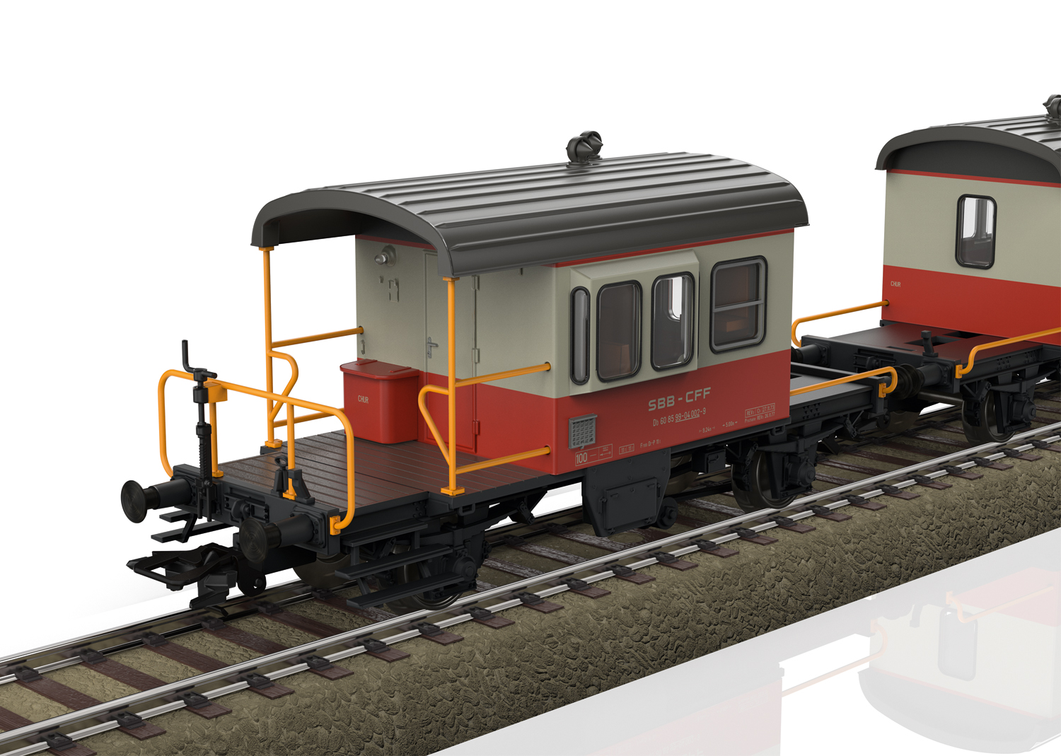 Kuppelwagen-Set Sputnik Swiss Express - Vorbild: Zwei ehemalige Dienstbegleitwagen Bauart Db der Schweizerischen Bundesbahnen (SBB/CFF/FFS). Kieselgrau/Blutorange Grundfarbgebung im Einsatz als Kuppelwagen des Swiss Express. Betriebszustand ab 1975.Modell: Komplette Neukonstruktion des Dienstbegleitwagen Bauart Db Sputnik. Typspezifisch gestalteter Unterboden mit vielen angesetzten Details. Pufferhöhe nach NEM. Separat angesetzte Griffstangen, Handbremskurbel, Gaskasten und Dachlüfter. Mit Inneneinrichtung. Länge über Puffer ca. 21,3 cm. Wechselstromradsatz E700150.Die passenden Personenwagen des Swiss Express finden Sie ebenfalls als Neukonstruktion im Trix H0-Sortiment unter der Artikelnummer 23690 und 23691. Eine passende Elektrolokomotive finden Sie im Trix H0-Sortiment unter der Artikelnummer 25420.Dieses Modell finden Sie in Wechselstromausführung im Märklin H0-Sortiment unter der Artikelnummer 46850.