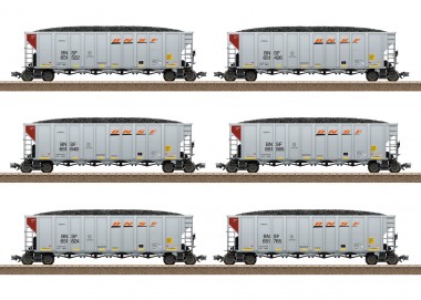Vorbild: Sechs Kohletransportwagen, sogenannte Hopper Cars, der Burlington Northern Santa Fe, LLC (BNSF). Ausführung mit fünf Entladeeinrichtungen am Wagenboden. Aktueller Betriebszustand. Modell: Detaillierte Drehgestelle mit Spezialradsätzen. Alle Wagen mit stirnseitig angesetztem Handrad und Ladeguteinsätzen Kohle ausgestattet. Für den Betrieb mit Klauenkupplungen kann der NEM-Schacht mittels beiliegenden Klemmstücken fixiert werden. Alle Wagen einzeln verpackt in zusätzlicher Umverpackung. Länge über Kupplung je Wagen ca. 19 cm. Wechselstromradsatz E320551 (NEM), E320389 (RP25). Ein ergänzendes Hopper Car-Set mit weiteren zwölf Wagen mit anderen Betriebsnummern finden Sie im Märklin H0-Sortiment unter der Artikelnummer 45666 mit dem Hinweis auf die benötigten Tauschradsätze.Die passenden Zuglokomotiven der Reihe ES44AC finden Sie unter der Artikelnummer 25446 und 25447.